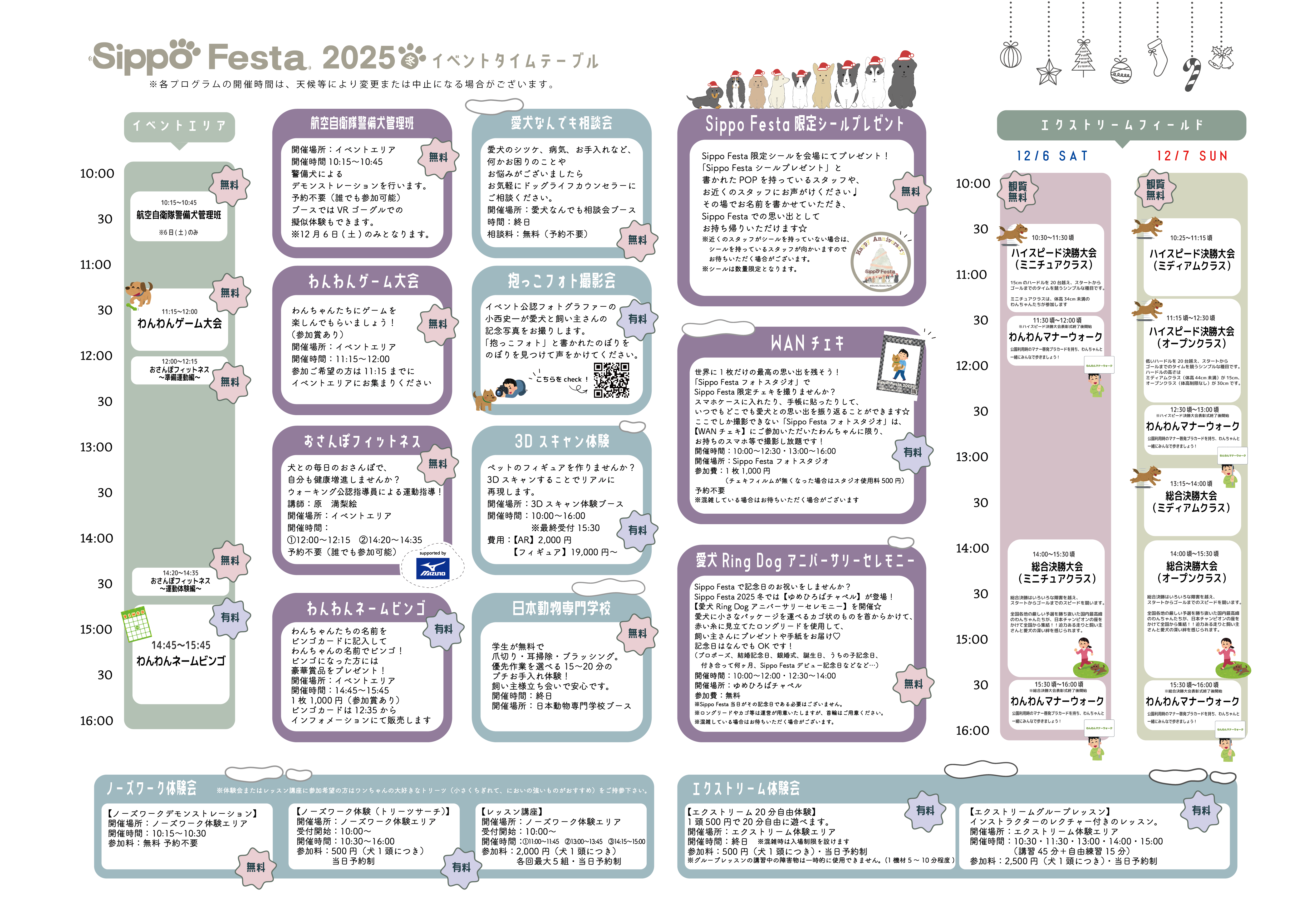A.雨天決行・荒天中止となります。中止の場合はSippo Festa公式HP・SNSにてお知らせいたします。
